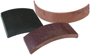 В легковом автомобильном сервисе колодки давно меняют исключительно в сборе, а вот в сфере обслуживания коммерческого транспорта их предпочитают восстанавливать, наклепывая новые накладки. Делается это из соображений экономии – в случае массивных колодок для грузовиков разница между накладкой и колодкой в сборе может быть весьма внушительной. Фрикционная накладка – это пластина из композитного материала, которая жестко крепится к металлической основе тормозной колодки. При нажатии на педаль тормоза, в тормозном контуре возникает давление, колодка прижимается к тормозному диску или барабану грузовика, и накладка начинает тереться об металлическую поверхность диска (барабана), превращая кинетическую энергию движения грузовика в тепловую, которую тормозной диск (барабан) и колодка принимают на себя и рассеивают в атмосфере. Накладка повторяет форму колодки и форму поверхности трения: прямую в случае дисковых тормозов и дугообразную в случае барабанных. К тормозным колодкам грузовых автомобилей накладка крепится при помощи заклепок. Клей применятся только в конструкции колодок легкого коммерческого транспорта и легковых авто. Накладка может иметь прямой профиль, либо каплевидный (в барабанных тормозах), может иметь монолитную конструкцию или состоять из нескольких частей с независимым креплением каждой части. Ну а самой важной характеристикой накладки является ее состав.